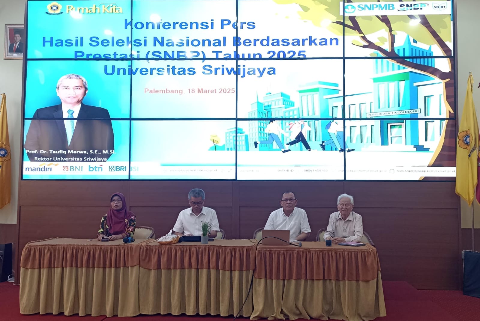 Palembang – BERITAMETRONEWS.COM Universitas Sriwijaya (Unsri) menggelar konferensi pers terkait hasil Seleksi Nasional Berdasarkan Prestasi (SNBP) Tahun 2025 di Ruang Djuaini Mukti, Kampus Unsri…